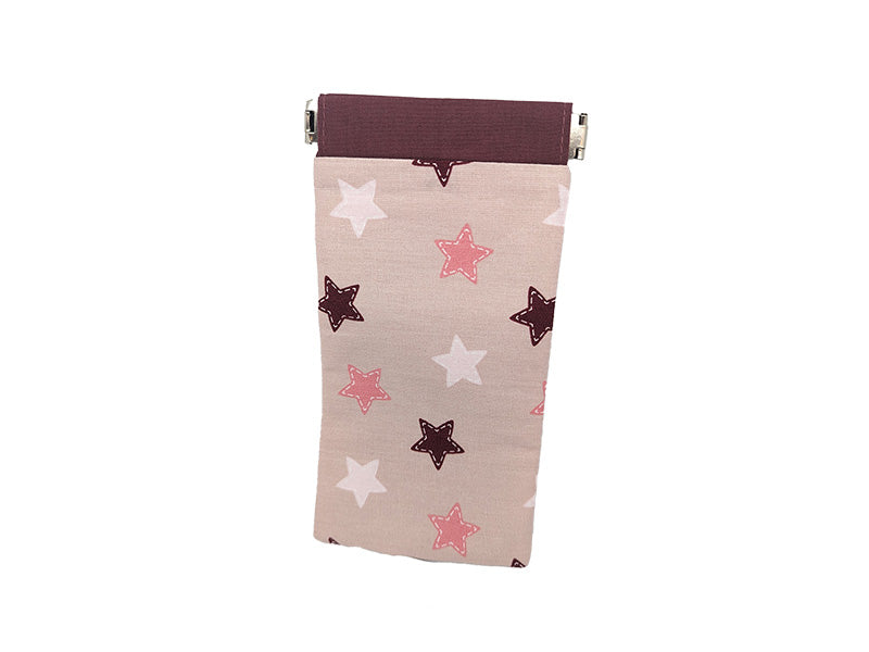 Il est conçu dans un très beau tissu rose avec des étoiles et sa doublure est pourpre.