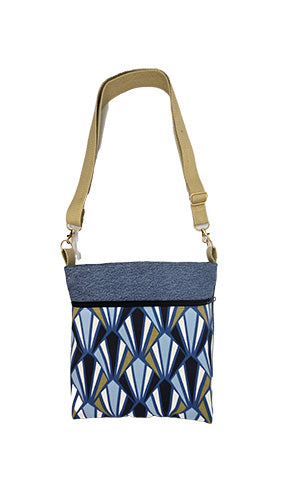 Sac à bandoulière artisanal jeans et coton bleu et beige
