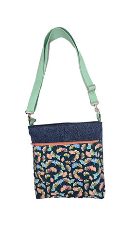 Sac à bandoulière artisanal jeans et feuilles de ginkgo