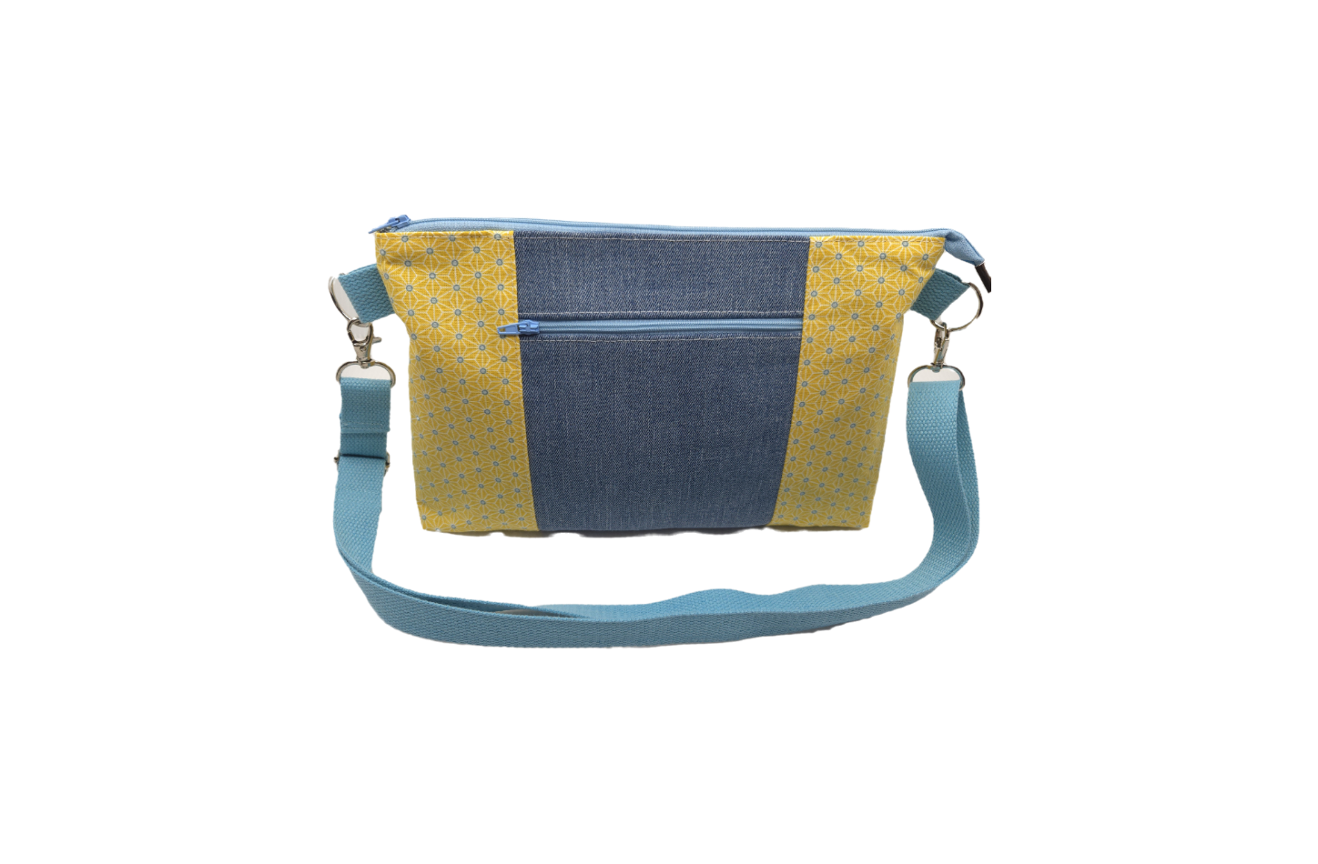 Sac à main artisanal jeans et motifs jaunes et bleus