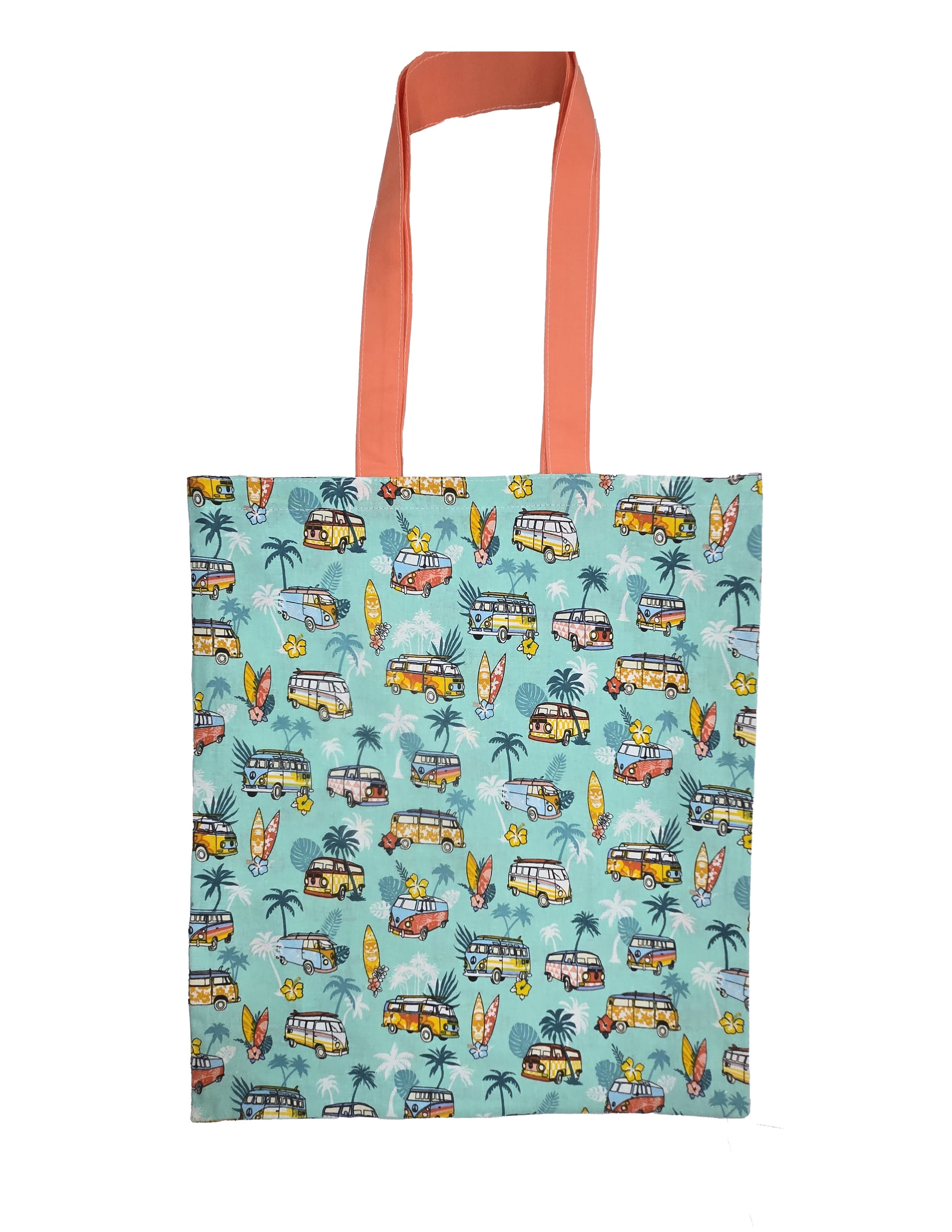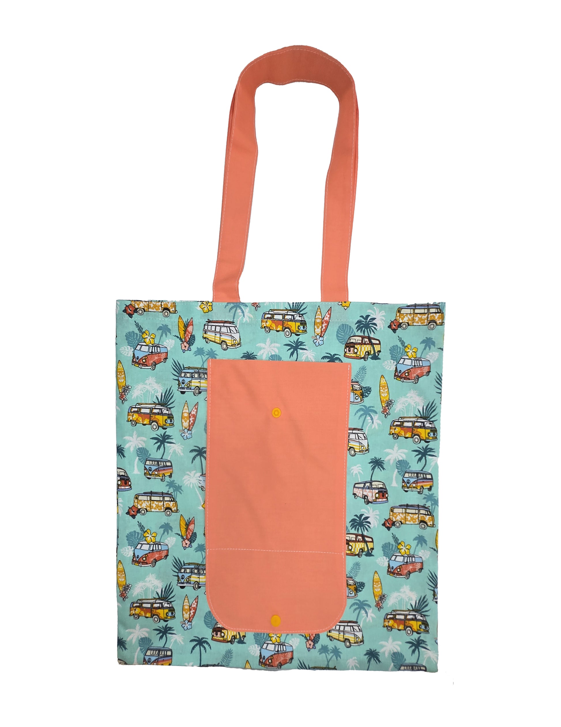 Ce joli sac en coton se replie sur lui-même pour passer de 38x40cm à 17x10cm. Très pratique pour le glisser dans son sac à main ou la boîte à gants de la voiture.