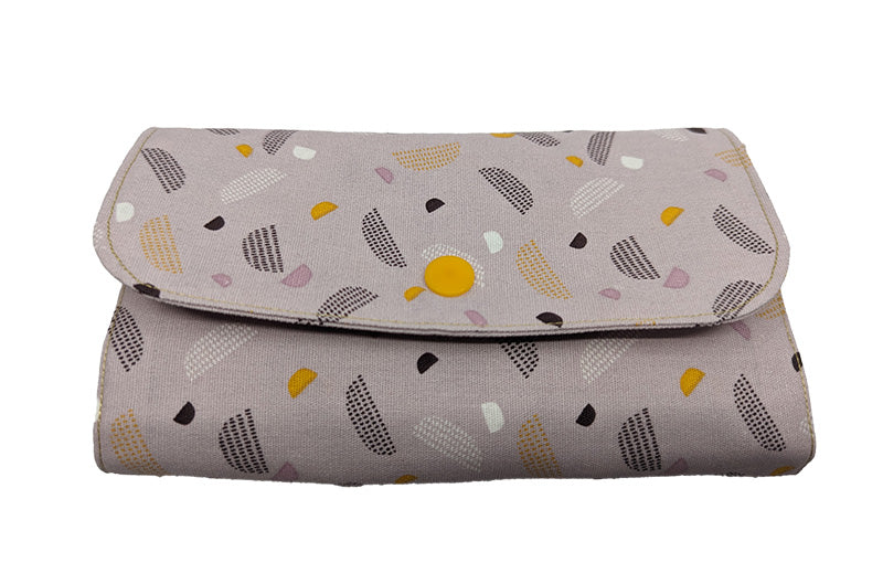 Une fois pliée, il tient fermé grâce à un bouton pression.