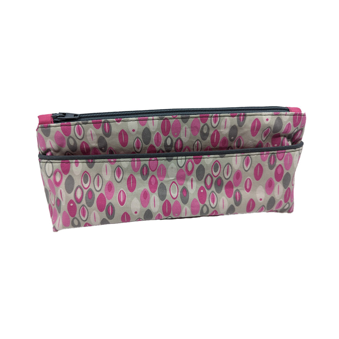 Trousse avec poche extérieure rose et grise